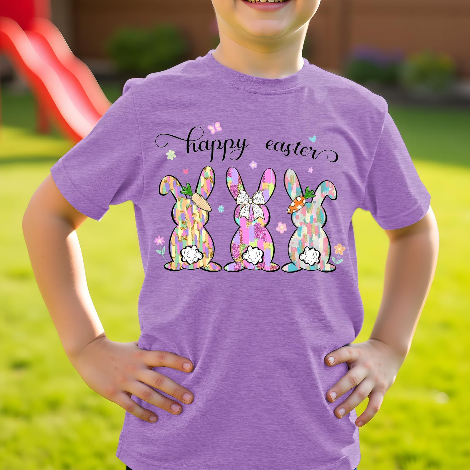 - This Happy Easter Bunny Shirt for Kids brings spring to life with adorable bunnies and colorful eggs—perfect for family gatherings or egg hunts, full of charm and cheer!