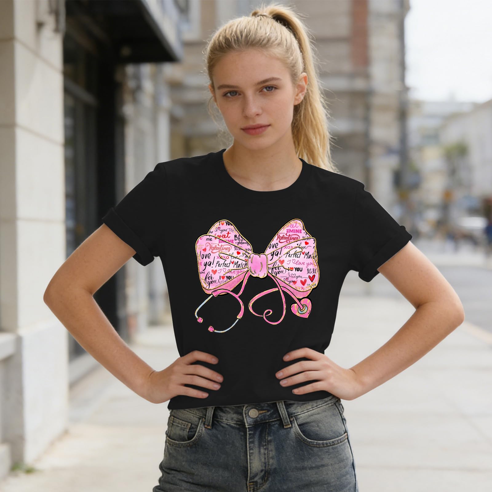 - Show your heart—both the anatomical and the emotional kind—with this charming Valentines Nurse Shirt for Women! Featuring sweet bows, playful hearts, and phrases like “Nursing with Love,” it’s a perfect blend of professional pride and Valentine’s cheer. Ideal as a Valentines Day Bow Short Sleeves tee for hospital shifts, nursing school, or coffee dates after a long day.